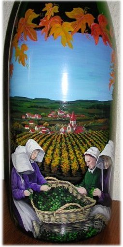 Ci-dessus, vous pouvez voir quelques exemples de mes réalisations.Celà vous donnera peut être l'idée de concrétiser, votre projet de peinture sur bouteille.